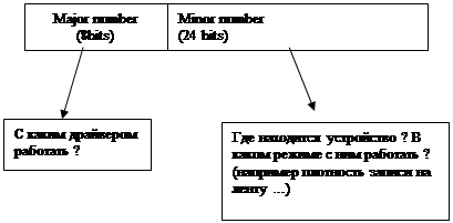 Старший номер (major number) Старший номер, как уже было сказано раньше является индексом в таблице переключателя устройств ядра. Для нахождения правильного старшего номера можно воспользоваться программой lsdev. Она считывает заголовки и список драйверов сконфигурированных в ядре с ихними блочными и символьными старшими номерами. Номера выводятся в десятичной форме, -1 означает либо то что устройство является модулем, драйвер несконфигурирован либо драйвер не поддерживает какогото из режимов (блочного или символьного). Младший номер (minor number) Младший номер определяет собой: расположение устройства и его драйвер-зависимые характеристики. Некоторые примеры младших номеров файлов устройств приведено ниже. Более полную информацию можно почерпнуть из руководства “Configuring HP-UX for Peripherals”. SCSI Disk device. Рассмотрим что означает младший номер 0x023000 у SCSI устройства.