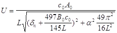 в котором S - площадь отверстия, b - длина горла (или, что то же самое, толщина листа), V - объем полости, равный произведению квадрата шага перфорации d на расстояние между листом и преградой d.