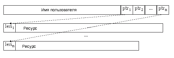 и Рис. 5. Структура PWL-файлаПолученный ключ используется для инициализации генератора псевдослучайных чисел по алгоритму RC4. Для каждого ключа RC4 порождает уникальную битовую последовательность (гамму). Алгоритм сопоставления ключа паролю слаб тем, что при выбранной длине ключа в двойное слово, множество различных ключей 232 оказывается неизмеримо меньше множества различных паролей. Это означает, что существуют пароли, которые операционная система не различает. При последующих регистрациях данным пользователем запрашивается пароль. Он приводится к верхнему регистру, опять сворачивается в ключ из которого опять порождается гамма. Если порождаемое этой гаммой имя пользователя дешифровывается правильно, то пароль считается введенным правильно. После этого дешифровываются таблица указателей на начала ресурсов и сами ресурсы. Дешифровка производится вторичным наложением гаммы сложением по модулю два. Если имя пользователя не дешифровывается правильно, то пароль считается неправильным. Таким образом проверка правильности введенного пароля производится по совпадению первых 20-и байт порожденной из него гаммы с первыми 20-ю байтами гаммы от правильного пароля. Этот алгоритм определения подлинности пароля является весьма оригинальным, т.к. нигде не сохраняется ни зашифрованный пароль, ни хеш-функция (необратимое преобразование) пароля, но, в то же время нелепо реализованным. Ведь поскольку имя пользователя известно заранее, то первые 20 байт гаммы тривиально вычисляются. Но, т.к. эта же гамма накладывается на каждый ресурс (отсутствие смены гаммы при шифровании разных полей - это основная ошибка применения алгоритма RC4 в данном случае), то можно дешифровать и первые 20 байт каждого ресурса! PWL-файл имеет избыточную информацию - есть указатели на начала ресурсов, но есть и длины записей в ресурсах и из одного можно вычислять другое. Если в ресурсах не более одной записи, то длина ресурса есть первое слово ресурса плюс два (длина первой записи ресурса плюс длина нулевого слова). Определяя по началу и длине данного ресурса начало следующего, рассчитывается вся таблица указателей на начала ресурсов. Если в ресурсах более одной записи, то начало следующего ресурса все равно можно найти. Это сводит прочность системы шифрования к нулю (под прочностью системы шифрования понимается количество вариантов, которые необходимо перебрать для ее гарантированного вскрытия). Алгоритм генерации ключа по паролю Имеем ключ (двойное слово) и пароль до 20-и символов. 1) Обнулить ключ. 2) Привести пароль к верхнему регистру. 3) Для каждого символа пароля, начиная с первого: а) прибавить код символа к ключу б) повернуть ключ влево 7 раз. Алгоритм сопоставления ключа паролю слаб тем, что при выбранной длине ключа в двойное слово, множество различных ключей 232 оказывается неизмеримо меньше множества различных паролей. Это означает, что существуют пароли, которые Windows 95 не отличает друг от друга. Это делает совершенно бессмысленными допускаемые в Windows 95 длинные пароли и эффективная длина пароля соответствует только пяти символам! Правда, это не означает, что для каждого пароля найдется эквивалент из пяти символов, т.к. множество паролей отображается на множество ключей неравномерно. Между тем, достаточно было накладывать гамму на ресурсы, не используя первых 