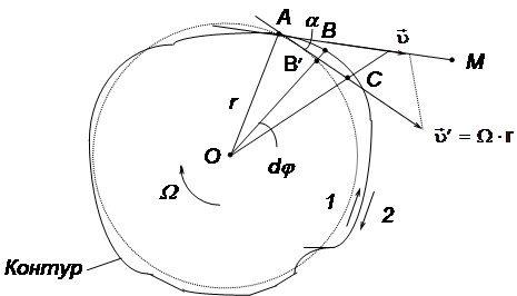 произвольную точку О. Угловую скорость вращения контура обозначим W.