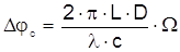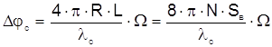 Это значение фазы, полученное при одиночном измерении, приводит к ошибке в измерении угловой скорости вращения. Для определения угловой скорости вращения, соответствующей этому значению фазы (эквивалентной ошибке измерения угловой скорости), используем ранее полученную формулу Саньяка: Имеем где N - число витков контура; D - диаметр витка. Подставляя N=L / pD в это выражение, имеем