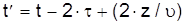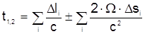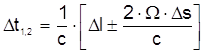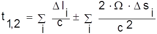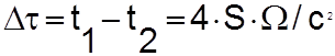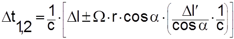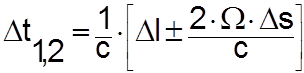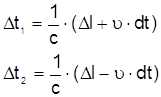удлинение пути для светового луча будет равно Считая скорость света инвариантной величиной, кажущиеся удлинения и сокращения путей для встречных лучей можно эквивалентно считать удлинениями и сокращениями отрезков времени, т.е. Подставляя