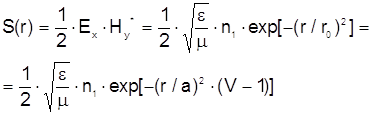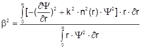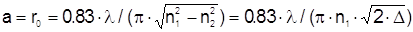 Дисперсия изменения гауссова профиля при изменении радиуса сердцевины волокна