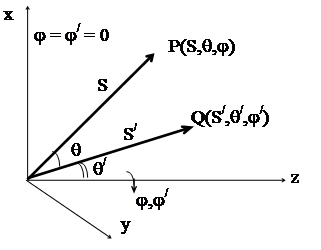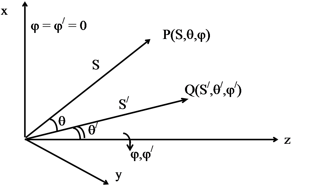 Сферические полярные координаты точек Р и Q