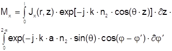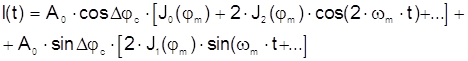 бегущих лучей. Если разность фаз, индуцированная вращением, равна Используя стандартное разложение по Бесселевым функциям, получаем: