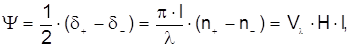 коэффициентом индекса преломления 2.5. Влияние внешнего магнитного поля на точностные характеристики ВОГ. Существует много веществ, оптические параметры которых зависят от величины напряженности внешнего магнитного поля. Коэффициент преломления среды есть один из таких параметров. Изменение коэффициента преломления связано с вращением плоскости поляризации излучения, распространяющегося в среде. Вращение плоскости поляризации светового луча, распространяющегося в среде, под действием магнитного поля обусловлено эффектом Фарадея. Иногда эффектом Фарадея называют искусственную оптическую активность, возникающую в среде под действием магнитного поля. Оптической активностью является способность вещества поворачивать вектор поляризации линейно-поляризованного светового луча. Если причиной возникновения вращательной способности является какое-либо внешнее воздействие (например, магнитное поле), то активность этого типа является искусственной. В оптически активном веществе оптическое излучение распадается на две волны, поляризованные циркулярно - по правому и левому кругам. Векторы поляризации этих волн вращаются в противоположных направлениях, а коэффициенты преломления для них различны. Линейно-поляризованный световой луч можно представить суперпозицией двух волн, поляризованных по кругу, со взаимно противоположным вращением вектора поляризации и равными амплитудами колебаний. Рассмотрим распространение линейно-поляризованной волны в среде, проявляющей эффект Фарадея. Для анализа распространения волны в среде, помещенной в магнитное поле, представим волну в виде суммы двух волн, поляризованных по кругу с противоположными направлениями вращения и различными скоростями распространения: где n- и n+ - показатели преломления для волн, поляризованных по правому и левому кругу. Фазовые задержки каждой из волн на пути l где n0 - показатель преломления среды при отсутствии магнитного поля. Выйдя из оптически активной среды, циркулярно поляризованные волны складываются. Различные фазовые задержки для волн, поляризованных по правому и левому кругу, приводят к повороту вектора поляризации волны по отношению к вектору поляризации падающего линейно-поляризованного излучения. Угол поворота плоскости поляризации на пути l где Vl - постоянная Верде; Н - напряженность магнитного поля. Обратимся теперь к контуру ВОГ. В нем даже в отсутствие магнитного поля существует взаимное двулучепреломление (см 2.2). Кроме того, взаимодействие магнитного поля индуцирует невзаимное круговое двулучепреломление, которое зависит от направления распространения луча. Это двулучепреломление суммируется с уже существующим взаимным двулучепреломлением в волокне. Именно комбинация двух двулучепреломлений в контуре В0Г определяет его чувствительность к внешнему магнитному полю. При отсутствии взаимного двулучепреломления невзаимная фазовая разность после интегрирования по замкнутому волоконному контуру будет равна нулю, поскольку интеграл по контуру тангенциальной составляющей внешнего магнитного поля равен нулю. Невзаимная фаза, накопленной в другой половине контура при учете реверса направлений распространения оптических колебаний по отношению к направлению магнитного поля. При наличии взаимного двулучепреломления эта к