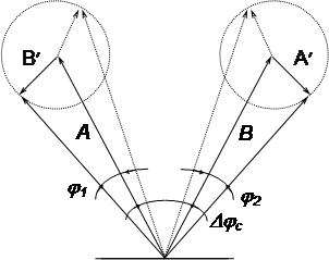 Как следует из векторной диаграммы (рис. 3.4.), при комбинации двух пар противоположно распространяющихся в контуре волн максимальное приращение фазы, обусловленное эффектом обратного рассеяния, можно выразить в виде