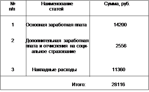 По этой статье учитываются расходы на выплату заработной платы, а также премий из фонда зарплаты всем участникам НИР, работающим в подразделениях. В состав исполнителей не включаются руководители указанных подразделений, а также работники вспомогательных отделов и служб, зарплата которых входит в состав накладных расходов. Расходы по заработной плате приведены в таблице:
