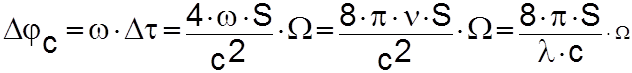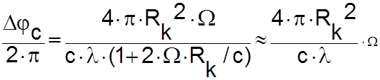 площадь сектора С точностью до бесконечно малых второго порядка площадь АОВ можно заменить на Ds. Тогда Полное время распространения встречных лучей вдоль всего контура где суммирование ведётся по числу элементарных секторов, на которые разбит весь контур. Таким образом, полное время, затрачиваемое лучом, бегущим по часовой стрелке при обходе всего вращающегося контура, больше чем полное время, затрачиваемое лучом, бегущим против часовой стрелки. Разность