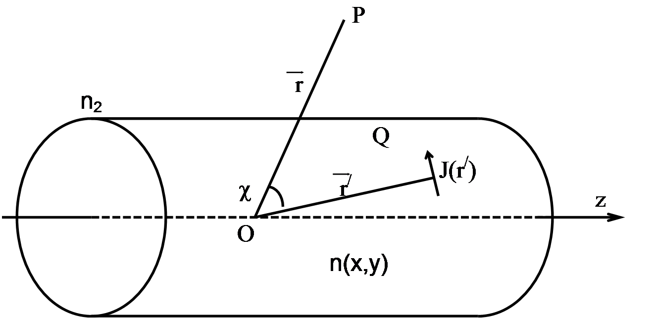 где - антисимметричные тензоры магнитной и диэлектрической проницаемостей материальной среды соответственно. Условием невзаимности является неравенство нулю приведенного выше соотношения. К средам, проявляющим невзаимность, относятся магнитно-гиротропные материалы (ферромагнетики): электрически гиротропные среды (диамагнетики), находящиеся под действием магнитного поля; прозрачные диэлектрики; среды, совершающие поступательное движение относительно любой системы координат, в которой задано электромагнитное поле; вращающиеся среды; канализирующие системы типа волноводов и световодов. Последние случаи представляют особый интерес, поскольку при вращении ВОГ появляется фазовая невзаимность, дающая фазовую разность Саньяка. При вращательном движении среды условие невзаимности имеет вид Наличие канализирующей среды в ВОГ (световода) приводит к появлению ряда невзаимных эффектов, приводящих к появлению «паразитной» разности фаз встречно бегущих лучей. Эта паразитная разность фаз существенно искажает «полезную» фазу Саньяка, увеличивает значение надежно регистрируемой фазы Саньяка (т.е. ухудшает чувствительность прибора). Кроме того паразитная разность фаз, обусловленная невзаимными эффектами, носит зачастую характер случайных флуктуаций. Исключение случайных флуктуаций может потребовать длительного накопления (интегрирования) выходного сигнала ВОГ, с тем чтобы выделить полезную составляющую (как показано в [1] в некоторых экспериментальных установках высокочувствительных ВОГ время интегрирования доходит до минут и даже до десятков минут). Применительно к ВОГ анализ принципа взаимности удобно проводить для цепи с четырьмя входами и выходами . Для оптического волновода четыре входа соответствуют вводам излучения вдоль двух взаимно перпендикулярных направлений поляризации на каждом конце волокна. Соответствующие входы и выходы определяются вдоль идентичных поляризационных осей. Отсюда следует, что в случае ввода излучения с исходным направлением поляризации Х свет, выходящий с ортогональным направлением поляризации У, будет обладать различными набегами фазы в каждом направлении распространения, а свет, выходящий с исходным направлением поляризации X, будет обладать одинаковыми набегами фазы для каждого направления распространения. В этом часть требований, налагаемых интерпретацией теоремы взаимности Лоренца, которая постулирует, что в случае линейной системы оптические пути в точности взаимны, если данная входная пространственная мода оказывается такой же на выходе. Одним из параметров пространственной моды является поляризация; второй параметр также должен быть определен, например пространственное распределение (расположение) моды. Следовательно, на конце контура ВОГ должны быть как поляризационный фильтр (селектирующий исходную поляризацию), так и пространственный фильтр, что будет удовлетворять принципу взаимности Лоренца . Эти довольно простые устройства в конструкции ВОГ (при условии, что они могут быть реализованы с достаточной точностью) будут гарантировать условия взаимности в системе, но только в том случае, если выполняется условие линейности. Если же нелинейности значительны, то ВОГ будет обладать взаимностью в том случае, если имеется точная симметрия относительно средне
