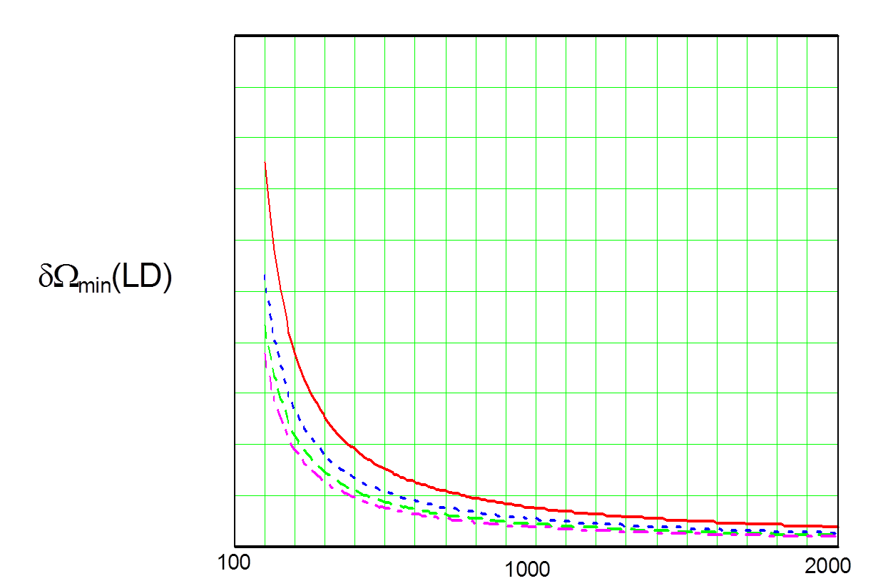 Минимально обнаруживаемая угловая скорость вращения в функции от