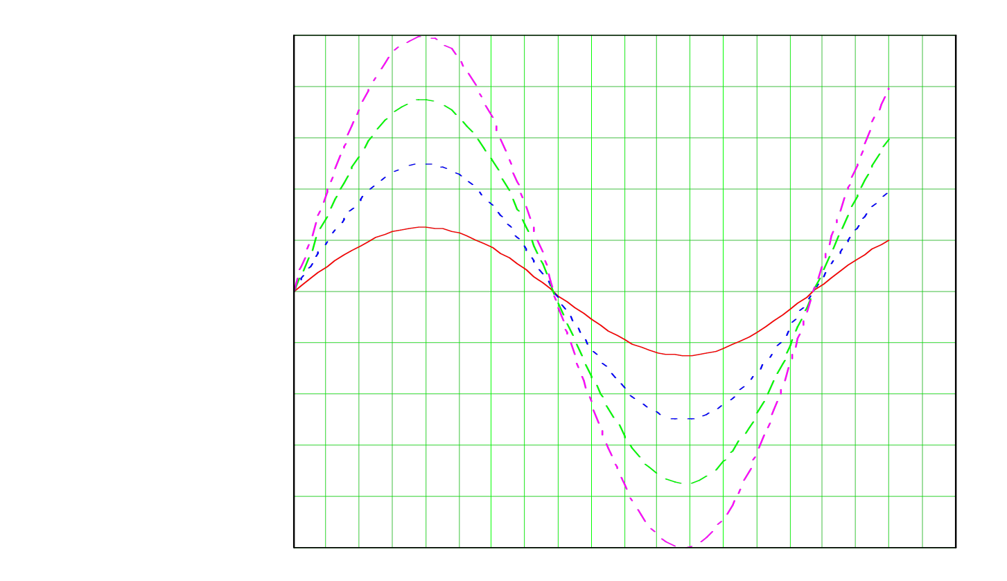 Разность фаз, обусловленная влиянием магнитного поля в функции от угла поворота плоскости поляризации на данном участке контура при различных значениях напряженности поля