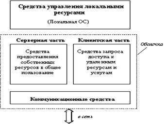 Рис. 1.1. Структура сетевой ОС В сетевой операционной системе отдельной машины можно выделить несколько частей (рисунок 1.1):