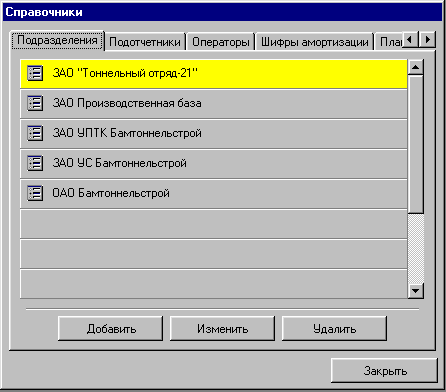 В данном окне вы сможете добавить, изменить и удалить подотчетное лицо текущего подразделения, в случае если необходимо изменить подразделение, следует выбрать вкладку «Подразделение» и выбрать необходимое подразделение. Нажав на кнопке «Добавить» появится окно, в котором необходимо ввести (инициалы, паспортные данные и телефон). Если необходимо изменить |