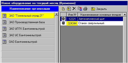 В появившемся окне с левой стороны вы выбираете наименование подразделения, в котором находится необходимое оборудование, а в правой стороне выбираете наименование основных средств, с которыми хотите производить стандартные операции программы, разберем их в отдельности.