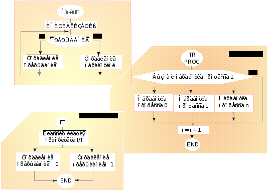 Разделено на независимые функциональные модули, называемые программными блоками (OL).