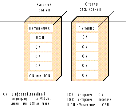 CSN представляет собой модульный блок, который предназначен для удовлетворения требований пользователя и реализации конфигурации местного/выносного цифрового концентратора. Он реализован в следующих стативах (см. рис.26):