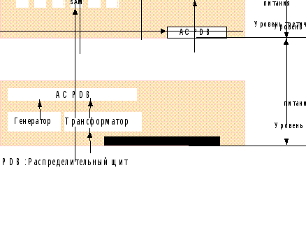 Рис. 33. Централизованное питание. 7.2.1.3. ОБОРУДОВАНИЕ ТРЕТИЧНОГО ЭЛЕКТРОПИТАНИЯ В зависимости от того, каким образом осуществляется подвод питания (местное питание или централизованное питание) возможны две конфигурации: Местное питание В этом случае в состав оборудования питания входит: