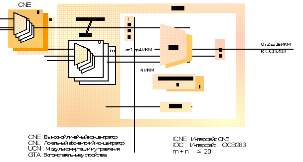 3.1 ФУНКЦИИБлок абонентского доступа (CSN) поддерживает следующие типы линий, которые подсоединяются к местным (CNL) или выносным (CNE) цифровым концентраторам (см. рис.4):