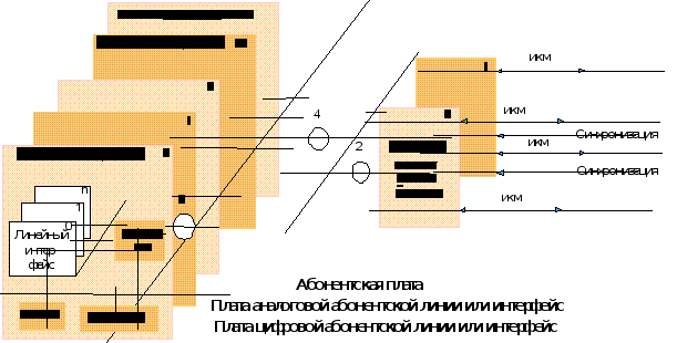 Плата аналоговой абонентской линии содержит 16 абонентских комплектов. Эта плата содержит также компоненты коммутации и управления, общие для всех 16 линий, подключенных к данной плате :