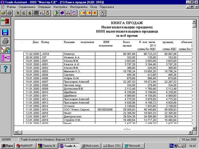 Рис. 17. Книга продаж ООО «Мастер-СД» Таблица 9. Структура выходного документа «Книга продаж»
