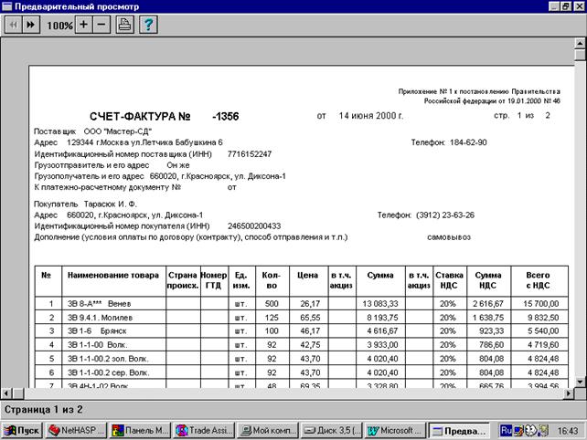 Рис. 15. Счет-фактура ООО "Мастер-СД" Таблица 8. Структура печатной формы первичного документа «Счет-фактура»