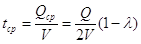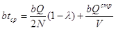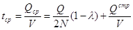 Это выражение отличается от значения tсp для предыдущей модели наличием постоянного слагаемого Qcp/V . За цикл tQ удельные затраты на хранение единицы запасенного продукта, руб./шт., определяются по формуле