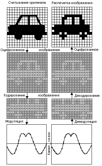Рис. 1.1.1. Кодировка символов Превратив буквы в числа, компьютер превращает числа в сигналы, и записывает их битами, из которых собираются байты: А - 192- 11000000 Б - 193 - 11000001 В - 194- 11000010 Г- 195- 11000011 Д - 196 – 11000100 и так далее. Графическая информацияКомпьютеры могут работать с графической информацией. Это могут быть рисунки или фотографии. Для того чтобы картинка могла храниться и обрабатываться в компьютере, ей превращают в сигналы. Такое превращение называют оцифровкой (Рис. 1.1.2). Для оцифровки графической информации служат специальные цифровые фотокамеры или специальные устройства – сканеры.