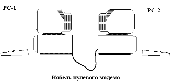 Речь идет не о сети (псевдосеть), а лишь о связи между двумя РС (Рис. 9.1.1.). однако и в этом случае имеется возможность обмена данными.