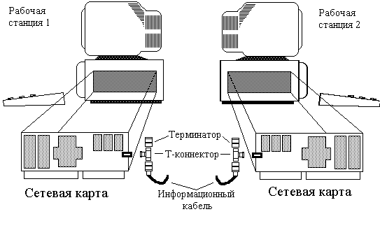 n При подключении новых рабочих станций, сеть должна быть кратковременно выключена.