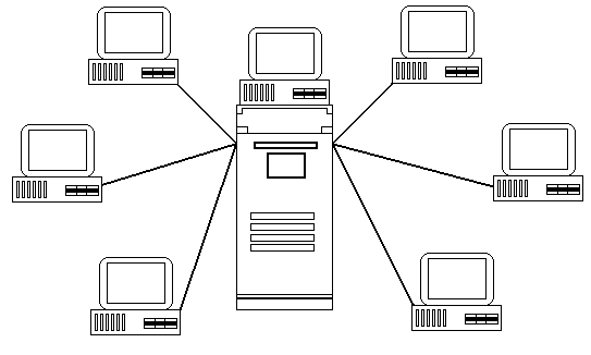 В сети с топологией «звезда» файловый сервер находится в центре (Рис. 9.2.1.).
