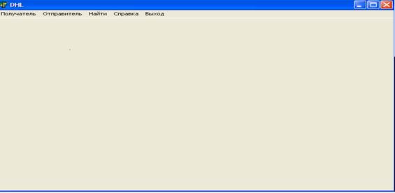 Пункт меню “Получатель” вызывает работу окна “Получатель”, в котором происходит заполнение данных о получатели. Это окно не обязательно для заполнения его пользователем, но здесь можно просмотреть все данные об получатели, когда – либо получаемого что – ни будь с помощью этой фирмы. А именно: номер счета, паспортные данные получателя или наименование организации, адрес, телефон, вес, сумма, на которую произведена отправка.
