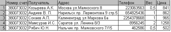 База данных – это организованная структура, предназначенная для хранения информации. С понятием базы данных тесно связано понятие системы управления базой данных. Это комплекс программных средств, предназначенных для создания структуры новой базы, наполнение её содержимым, редактирования содержимого и визуализации информации. Под визуализацией информации базы понимается отбор отображенных данных в соответствии с заданным критерием, их упорядочивание, оформление и последующая выдача на устройство вывода или передачи по каналом связи. Базы данных могут содержать различные объекты, но, забегая вперед, скажу, что мною будет использован объект – таблица. В основные свойства полей таблиц входит: имя поля, тип поля, размер поля, формат поля, маска ввода, подпись, значения по умолчанию, условия на значение, сообщение об ошибке, обязательное поле, пустые строки, индексированное поле. Типы данных таблице следующие: текстовые, мемо, числовое, дата, денежный, логические типы. Производственная практика пройдена мною на частном предприятии “ATM - Express”. Цель данной работы является автоматизация обработки данным по постоянным клиентам с целью упрощения работы персонала с клиентам. По приходу клиенту выписывается определенная квитанция, в которой указывается: номер счета, адрес отправителя, адрес получателя, вес отправки, количество мест, что подлежит отправки, стоимость отправки. Если что чаще бывает клиент постоянный, менеджеру приходится искать в документах его предыдущий отправки чтоб оформить заново. Это очень много отнимает времени у клиента и менеджера. Мая задача облегчить и ускорить работу менеджера с клиентами. При работе с программой требуется редактирование данных, т. е. исправление уже введенных данных. А также требуется сортировка данных по всем имеющимся параметрам. 2. Изложение задачи.