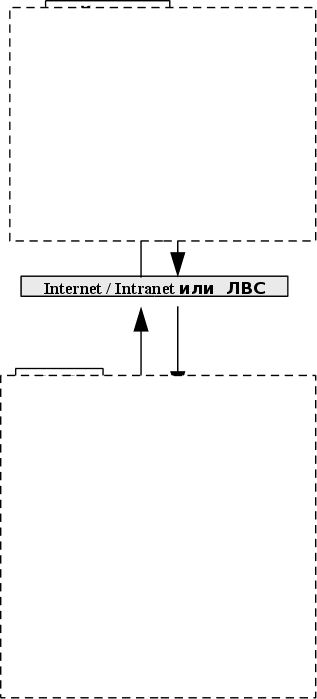 Технический проект структуры ТО ПТК.Ниже приведена одна из конкретных реализаций ТО ПТК (именно на таком ТО работал автор) Как видно из приведённой схемы, программа может работать как с внутренними клиентами (Intranet), так и с внешними (Internet). Типичная ЭВМ, за которой автор разрабатывал и тестировал ПТК - это процессор Intel 486DX2 66 МГц, 4 Мбайт ОЗУ, жесткий диск 100 Мбайт. ОС- MS DOS 6.22 и Windows3.1 Сеть на базе NetWare- это витая пара + карты Ethernet2000 на рабочих станциях Сервер NetWare по конфигурации не сильно отличается от UNIX- сервера, конфигурация которого описана ранее. |