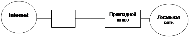 Межсетевые экраны, основанные на фильтрации пакетов, имеют такие же недостатка, что и фильтрующие маршрутизаторы, причем эти недостатки становятся более ощутимыми при ужесточении требований к безопасности защищаемой сети. Отметим некоторые из них: ·сложность правил фильтрации, в некоторых случаях совокупность этих правил может стать неуправляемой; ·невозможность полного тестирования правил фильтрации; это приводит к незащищенности сети от не протестированных атак; в результате администратору трудно определить, подвергался ли маршрутизатор атаке и скомпрометирован ли он; ·каждый хост-компьютер, связанный с сетью Internet, нуждается в своих средствах усиленной аутентификации. Межсетевой экран на базе двупортового шлюза Межсетевой экран на базе двупортового прикладного шлюза включает двудомный хост-компьютер с двумя сетевыми интерфейсами. При передаче информации между этими интерфейсами и осуществляется основная фильтрация. Для обеспечения дополнительной защиты между прикладным шлюзом и сетью Internet обычно размещают фильтрующий маршрутизатор (рисунок). В результате между прикладным шлюзом и маршрутизатором образуется внутренняя экранированная подсеть. Эту подсеть можно использовать для размещения доступных извне информационных серверов .