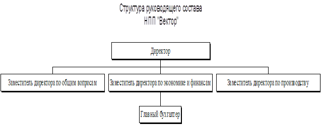 Рис. 7.1 Заместители директора являются руководителями структурных подразделений охватывающих все сферы деятельности предприятия. На предприятии разработано и утверждено штатное расписание в соответствии с которым и осуществляется деятельность предприятия. В настоящее время на предприятии работает 12 человек. Руководящий состав 3 человека. Бухгалтерский учет на предприятии ведет главный бухгалтер. Работу по предоставлению доступа к сети Интернет осуществляют 3 специалиста. Технические специалисты различных направлений – 5 человек. На сегодняшний день потребности в кадрах предприятие не имеет. Все специалисты имею высшее либо средне - техническое образование. В дальнейшем с расширением спектра и масштаба предоставляемых услуг в области Интернет потребуется некоторое количество специалистов, прием на работу которых будет осуществляться на конкурсной основе с учетом профессиональных навыков. Система оплаты на предприятии повременная и повременно-премиальная. Разработана обширная, гибкая система премиальных выплат, что позволяет поддерживать дисциплину и эффективно использовать труд сотрудников. 8. Юридический план. Все виды деятельности предприятия разрешены законодательством Республики Беларусь, отдельные из них подлежат обязательной сертификации (лицензированию). В связи с этим предприятие имеет следующие разрешения и лицензии: - Лицензия на осуществление оптовой торговли № 52946 от 18.07.2000 г.; - Сертификат соответствия на серийное производство компьютера «VEKTOR» № BY/11203.1.1.АА7097 от 10.09.1999 г.; - Лицензия Министерства связи на строительство сетей и систем связи № 1685 от 20.07.2000 г.; - Лицензия Государственного центра безопасности информации при Совете Безопасности Республики Беларусь на проведение работ по выявлению устройств съема информации и контролю её защищенности № 158 от 07.07.2000 г.; - Лицензия Государственного центра безопасности информации при Совете Безопасности Республики Беларусь на реализацию, монтаж, наладку, сервисное обслуживание технических и программных средств защиты информации и контроля её защищенности, программно-аппаратных средств защиты от несанкционированного доступа № 131 от 02.11.1999 г.; - Сертификат Allied Telesyn International; - Сертификат Intel Corporation; Унитарное частное научно-производственное предприятие «Вектор», юридический адрес: г. Бобруйск, ул. Чонгарская-98.Предприятие было создано 16 января 1991 г. на основе частной собственности гражданина Миненко Александра Козьмича. Уставный фонд предприятия составляет 1 717 498 рублей. Основной деятельностью предприятия является деятельность в научно-производственной области и области торговли. С момента создания предприятия вся его деятельность была направлена на внедрение в различные сферы жизни региона новых, быстро развивающихся информационных технологий. Сотрудниками предприятия осуществлялась работа по обеспечению потребности использования в повседневной деятельности предприятий и организаций, новых компьютерных технологий и вычислительных систем, использования современной офисной техники, применение которой значительно увеличивает производительность труда и снижает производственные и трудовые затраты предприятий. Основными клиентами компании, на заре её создания, были промышленные предприятия, правоохранительные органы и другие общественные 