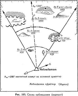 Схема наблюденияДля того чтобы организовать тщательное наблюдение и получить более полные и точные данные о противнике и местности, наблюдатель ведет схему наблюдения.