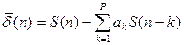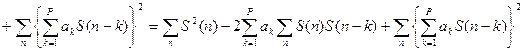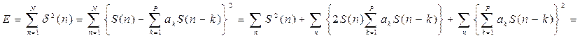 S(Z) - Z–преобразование сигнала A(Z) – фильтр (анализатор) сигнала Любая модель линейного предсказания приводит к ошибкам предсказания. В случае, если мы используем авто корреляционный метод, тогда ошибка предсказания будет: