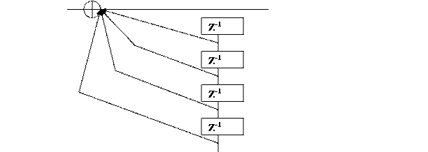 Этот фильтр еще называется рекуррентный фильтр с БИХ первого порядка. Схема фильтра n – го порядка выглядит следующим образом: X(n) Y(n)