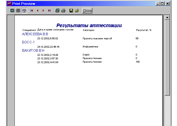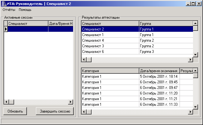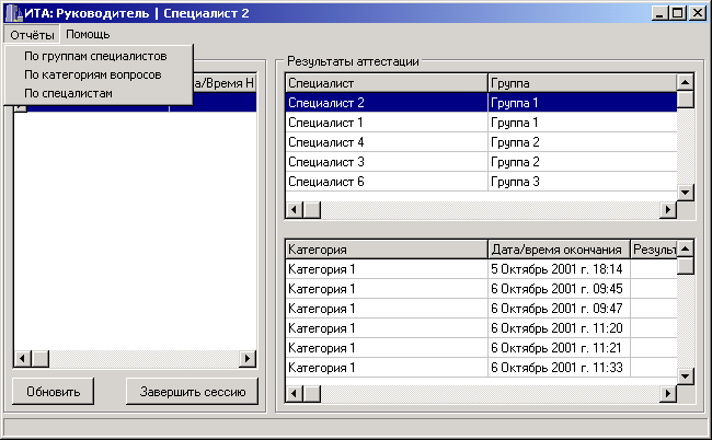 Завершение сессии аттестации ( с автоматическим подсчётом результатов )