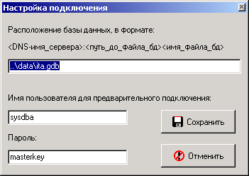 Если по каким либо причинам предварительное подключение к серверу вызовет ошибку, пользователь будет об этом информирован и ему будет предложено выполнить настройку параметров подключения. Такой порядок позволяет избежать "ручного" редактирования файла конфигурации при первом запуске компонентов системы.