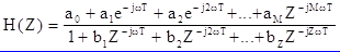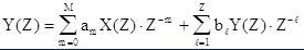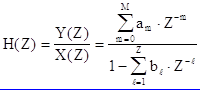 Алгебраизация осуществляется применением теорем линейности и запаздывания. Переход в область Z - изображений позволяет ввести понятие передаточной функции дискретной цепи H(Z), которая определяется как отношение Z - изображения сигнала на выходе цепи к Z - изображению сигнала на входе цепи. Поэтому, учитывая алгебраическую форму разностного уравнения общего вида, можно записать общий вид передаточной функции дискретной цепи