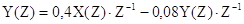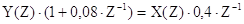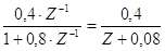 Применяя к результату деления теорему запаздывания, получаем h(nT) = {0 ; 0,4 ; -0,032 ; 0.00256 ; ...} Сравнивая результат с расчетами по разностному уравнению в предидущем примере, можно убедиться в достоверности расчетных процедур.