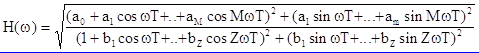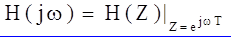 где знаки слагаемых учитываются в коэффицентах ai , bj , при этом b0=1. Свойства передаточной функции цепи общего вида удобно сформулировать в виде требований физической реализуемости рациональной функции от Z: любая рациональная функция от Z может быть реализована в виде передаточной функции устойчивой дискретной цепи с точностью до множителя H0ЧHQ, если эта функция удовлетворяет требованиям: коэффициенты ai, bj - вещественные числа, корни уравнения V(Z)=0, т.е. полюсы H(Z), расположены в пределах единичного круга плоскости Z. Множитель H0ЧZQ учитывает постоянное усиление сигнала H0 и постоянный сдвиг сигнала по оси времени на величину QT. Частотные характеристики. Комплекс передаточной функции дискретной цепи
