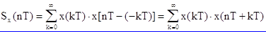 Энергетический спектр выражает среднюю мощность сигнала x(nT), приходящуюся на узкую полосу частот в окрестности переменной w. Во временной области энергетическому спектру соответствует свертка инверных сигналов, что определяет корреляционную функцию Sx(nT) сигнала x(nT).