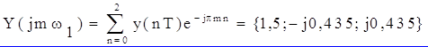 2. Расчёт в частотной области. Вначале необходимо определить отсчёты спектра сигнала по формуле прямого ДПФ