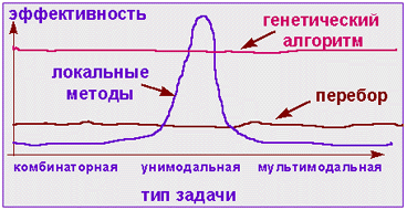 Дост Градиентные методы работают очень быстро, но не гарантируют оптимальности найденного решения. Они идеальны для применения в так называемых унимодальных задачах, где целевая функция имеет единственный локальный максимум (он же - глобальный). Легко видеть, что задача коммивояжера унимодальной не является. Типичная практическая задача, как правило, мультимодальна и многомерна, то есть содержит много параметров. Для таких задач не существует ни одного универсального метода, который позволял бы достаточно быстро найти абсолютно точное решение. Однако, комбинируя переборный и градиентный методы, можно надеяться получить хотя бы приближенное решение, точность которого будет возрастать при увеличении времени расчета.