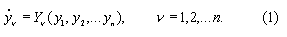 Поведение широкого класса физических систем часто описывается дифференциальными уравнениями n–го порядка, которое всегда может быть преобразовано в эквивалентную систему n дифференциальных уравнений 1-го порядка в виде: Здесь yν(t) являются какими – либо зависимыми переменными, связанными с «движением» (в свете механики), т. е. С временным (динамическим) протеканием процесса; например, в электрических системах это могут быть напряжения, токи, заряды и т. п. Точка сверху означает производную от этих величин по времени: формула