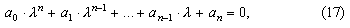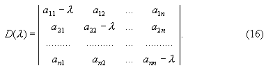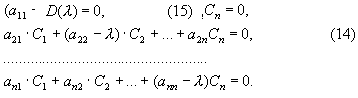 Уравнение (15) представляет собой характеристическое уравнение системы дифференциальных уравнений (12) и является алгебраическим уравнением n-ой степени относительно λ: