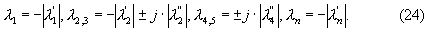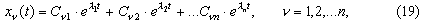 где aν-постоянные коэффициенты характеристического уравнения, которые определяются коэффициентами aνi определителя (16) и системы (12). Уравнение (17) имеет в общем случае n различных комплексных корней: